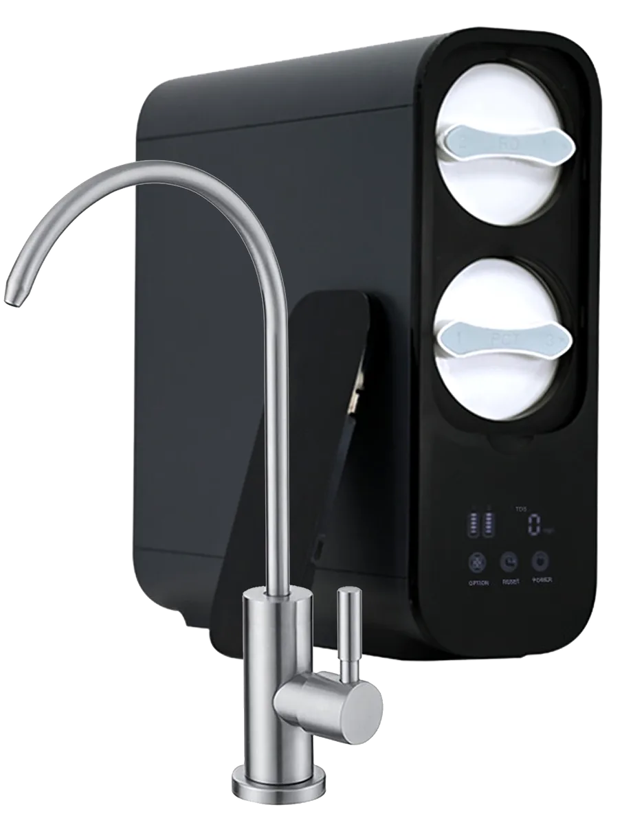 - Incorpora los siguientes filtros, prefiltro, membrana y post carbón.